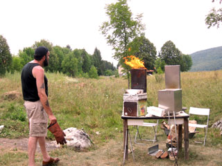 Radimo na terenu ateljea u 4 plinske i jednoj raku peći na drva kako bi smo pokazali različite aspekte i efekte koji se mogu postići kombinacijama glazura i načina paljenja.