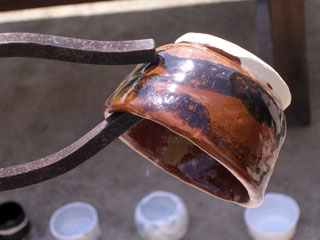 One of the days of the workshop was dedicated to american raku, with lots of smoke and firings. That was also the day to compare the two different approaches to the same object. As the traditional IDO was to make the cups that could safely be used