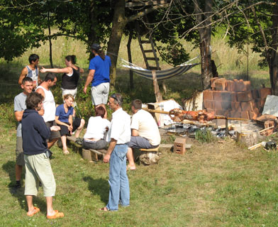 Participants of this workshops actively participate in making food on the outside open fire, making and baking bread in our bread oven. And if there is enough of this 'hard' working, they can take a brake and go for a walk or biking in the surroundings while the diner has been prepared.