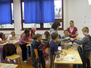 Na radionicama keramike djecu se potiče na trodimenzionalno razmišljanje, na slobodno oblikovanje ideja i zamisli, na razumijevanje procesa stvaranja u glini.